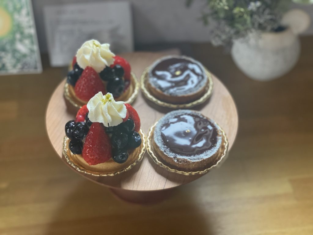 当店のタルトは小麦粉、卵、アーモンド、乳製品を使用しております
